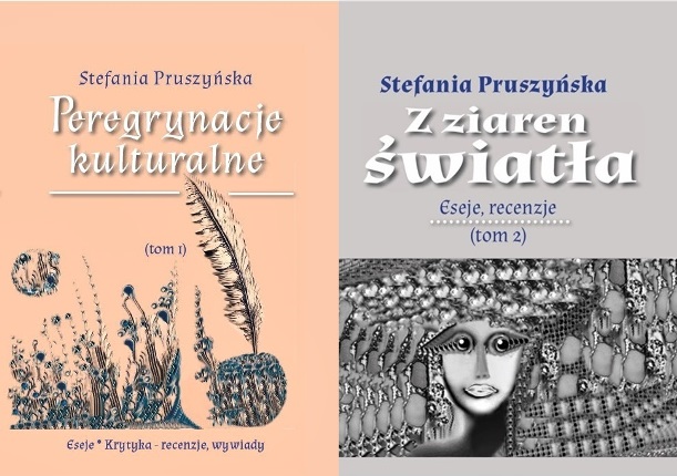 Okładki książek „Peregrynacje kulturalne”, tom 1, oraz „Z ziaren światła”, tom 2, z cyklu „Peregrynacje kulturalne”, Stefania Pruszyńska